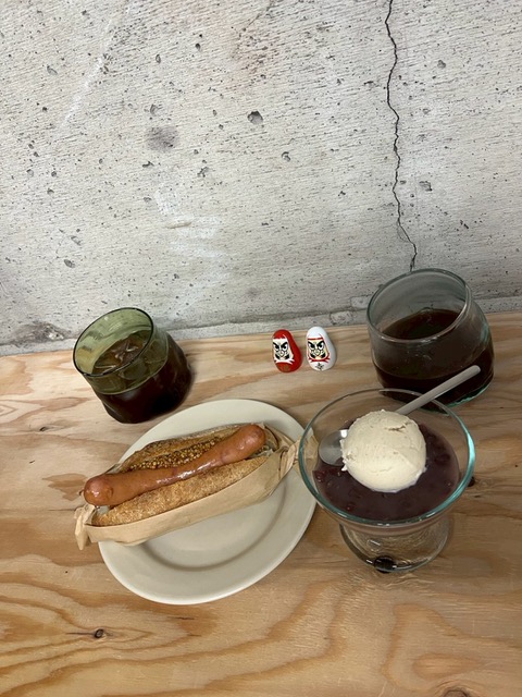 帰りにgreetingカフェへ寄り、ホットドッグとクリームぜんざいを賞味。