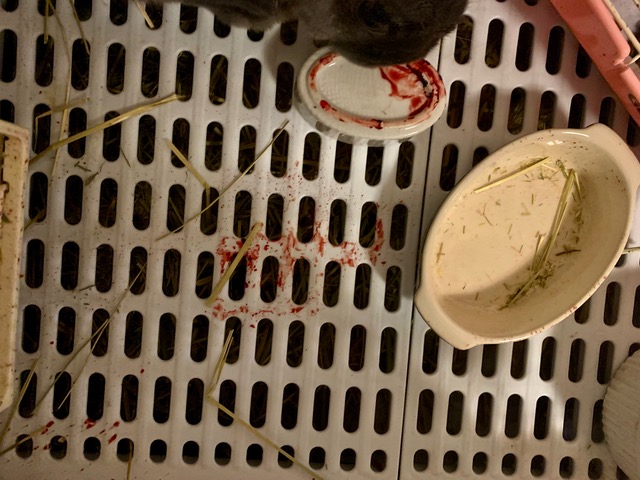 ケージを齧齧して抜けなくなり、暴れて歯や口を損傷したか、