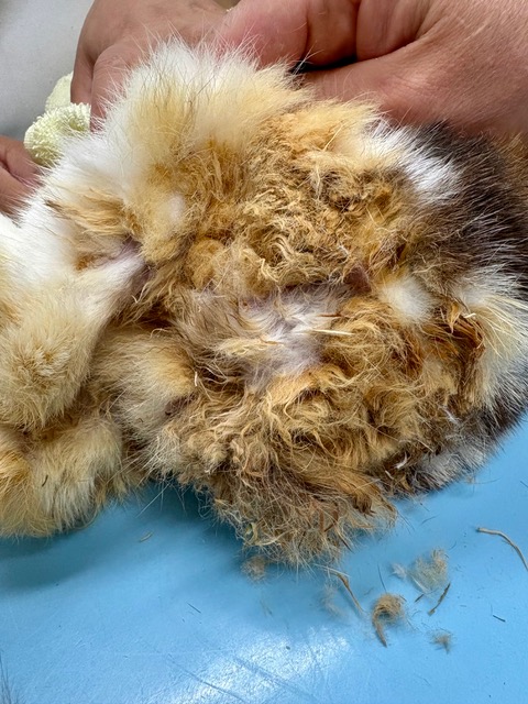 今回はバリカンを用いて、可能な限り汚れた被毛を除去しました。
