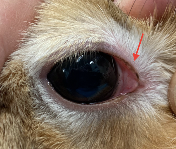 ウサギの第三眼瞼(瞬膜)は、目の内側(鼻側)にある半透明の膜で、異物や乾燥から目を守る役割を持っています。