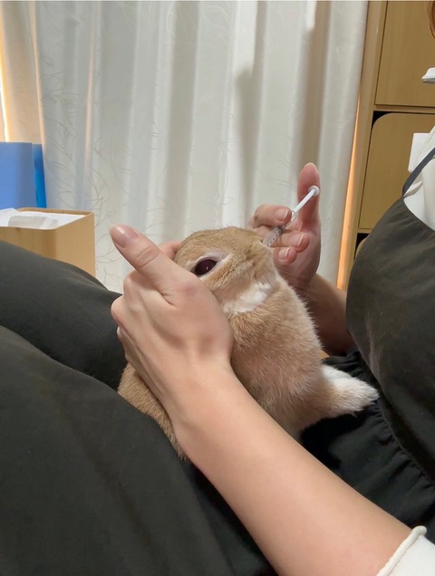ウサギのことを十分知り尽くした飼主さんだから可能な処置ですが、これができるからウサギを飼うことが更に好きになるのだと思います。
