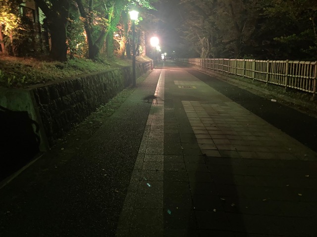 夜のジョギング中、名古屋城外堀沿いを走っていたとき、不意に視界の端に動物の気配が現れた。