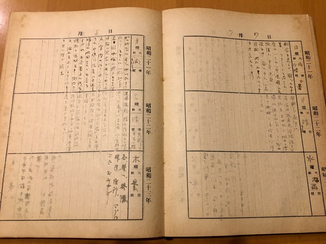 古めかしいながらもしっかりした作りの日記帳で、なんと昭和21年から23年までの3年日記。