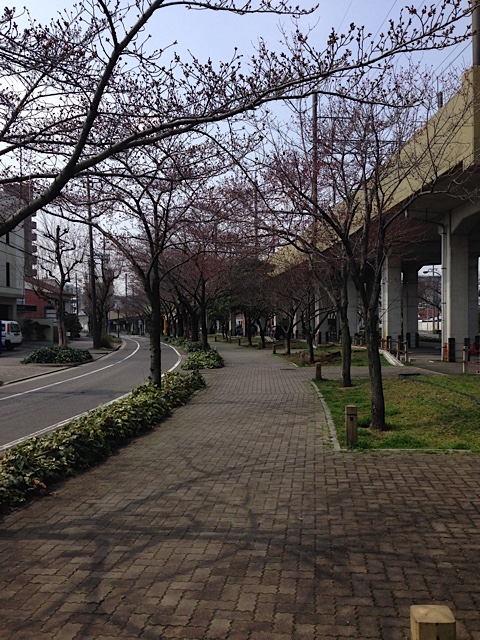 近所の遊歩道の桜はまだ咲きだしておらず。