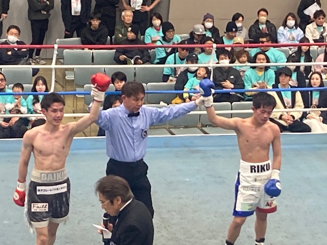3人の審判のうち、ドローとした判定が「梨久くん優勢」と判断し、彼が次戦への進出を決めました!